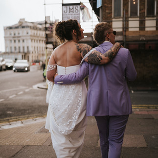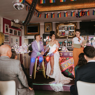 We had our ceremony at Centre Stage, a drag bar on Brighton seafront on the 55th anniversary of the Stonewall uprising, followed by our Reception at Pier Court just next door.